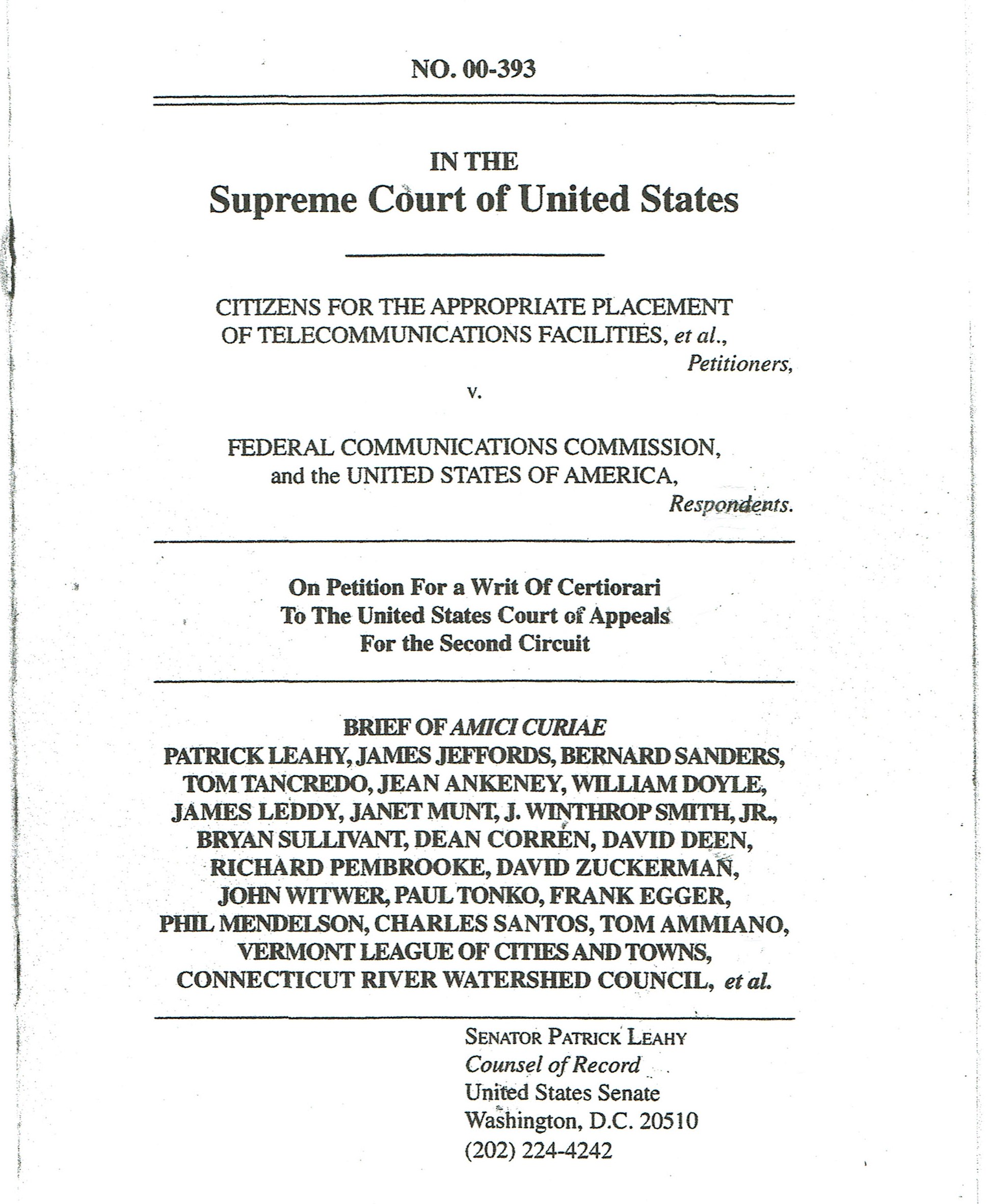 ← Does the 1996 Telecommunications Act violate the U.S. Constitution? The Leahy, Jeffords, Sanders et al. amicus brief to the Supreme Court in 2000